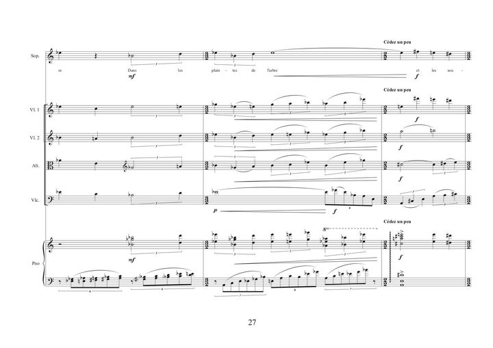 Commande a également été passée au compositeur Olivier Penard d’une pièce pour soprano, quatuor à cordes et piano. Il a choisi le poème “Ophélie”.